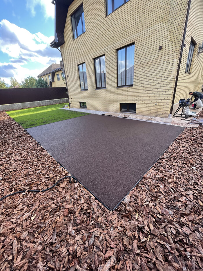 - материалы: Праймер-РК (1К), ПУ-клей для резиновой крошки (1К), резиновая крошка (черная);